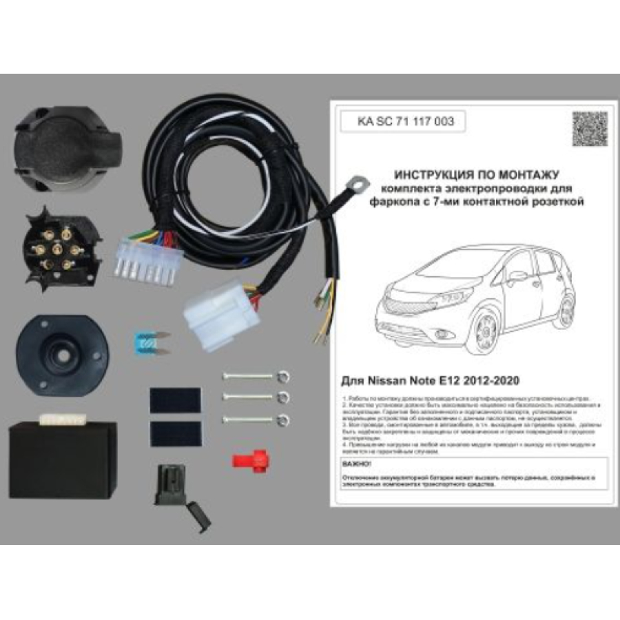 Комплект электропроводки фаркопа 7-pin Nissan Note E12 2012-2016 с блоком купить в Москве