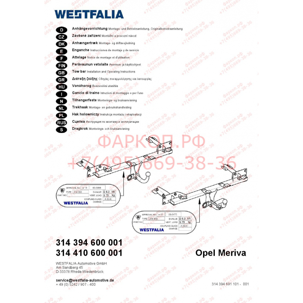 Фаркоп Opel Meriva B 2010-2017- 314394600001 WESTFALIA купить в Москве