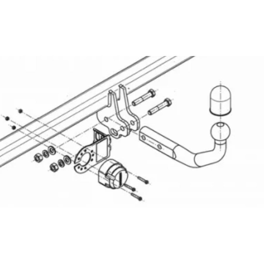 Фаркоп на Peugeot 308 универсал 2014-2021. Требуется подрезка бампера. Тип шара: A. Нагрузки: 1600/75 кг, масса фаркопа 18,6 кг