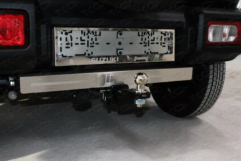 Фаркоп оцинкованный Suzuki Jimny 2019- с накладкой с надписью Jimny крюк легкосъемный под квадрат 50х50 (нерж. шар)