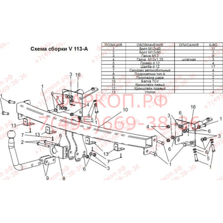 Фаркоп Volkswagen Caddy фургон 2004- V113-A Лидер-плюс купить в Москве