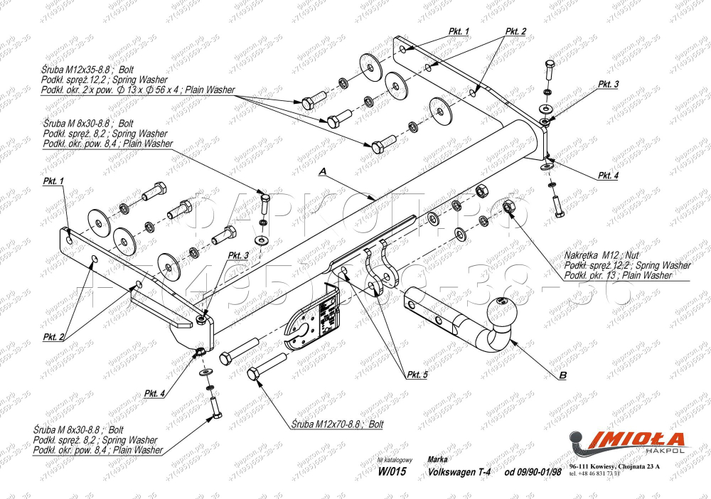 Фаркоп Volkswagen Transporter T4 1990-1996 - W.015 IMIOLA