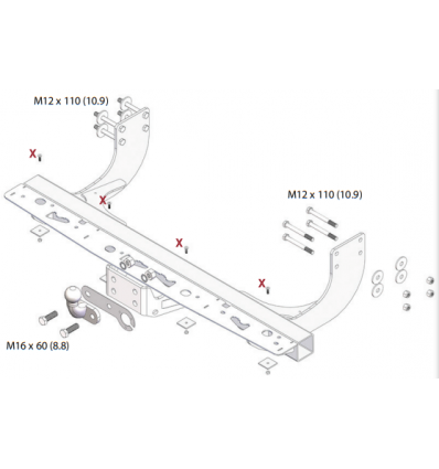 Фаркоп на Volkswagen Crafter II фургон с одинарными колесами, бампер со ступенькой 01/2017- без подрезки бампера. Тип шара: F (2 уровня высоты). Нагрузки: 3500/140 кг, масса фаркопа 29 кг
