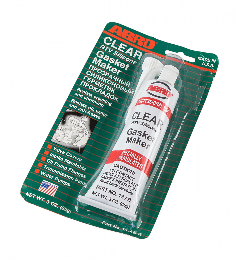 Многоцелевой герметик-прокладка предназначен для ремонта или замены почти всех встречающихся в автомобиле прокладок. Герметик ABRO принимает любую форму и успешно выдерживает сжатие, растяжение и сдвиг; совершенно не разрушается под действием автомобильных масел, воды и антифриза. Также герметик ABRO обладает высокой стойкостью к бензину и тормозной жидкости.