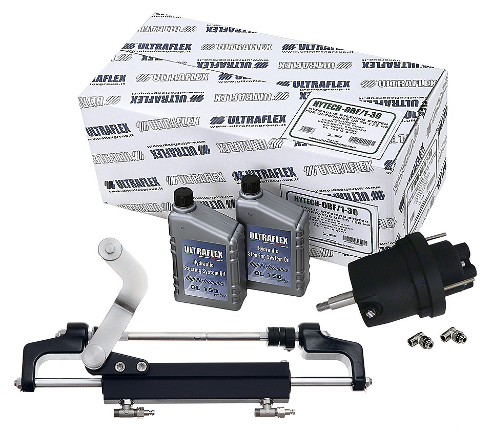 Гидравлическая рулевая система для подвесных двигателей мощностью до 175 л.с. Включает рулевую машинку UP20F, гидроцилиндр UC95-OBF/3, 2 литра гидравлического масла и пару шлангов (9 метров, могут быть укорочены по месту). Внимание, рулевое колесо в комплект не входит и приобретаются отдельно!