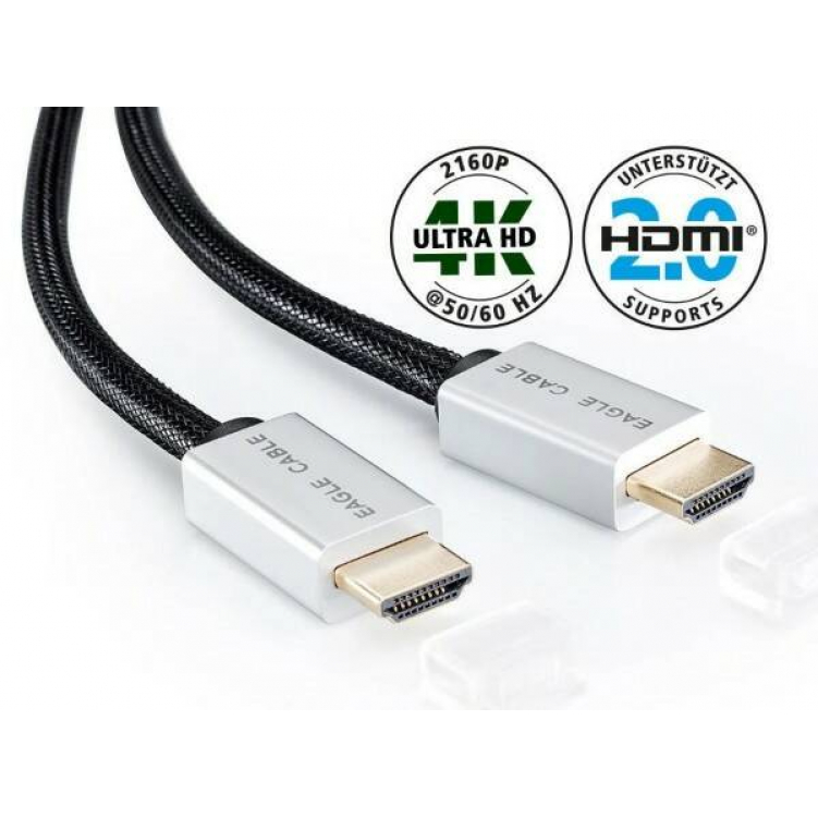 Кабель High Speed HDMI с Ethernet серии Deluxe компании Eagle Cable поддерживает все форматы HD-аудио и разрешение до 2160p 4K. Одножильные проводники для передачи данных имеют тройное экранирование. Разъёмы с позолотой 24 карата обеспечивают оптимальный и долговременный контакт. Подходит для соединения цифровых аудио- и видео-компонентов, таких как AV-ресиверы, плееры DVD, Blu-ray или игровые приставки, с плазменным, ЖК, LED телевизором или проектором. Угловые разъёмы обеспечивают удобство подключения.