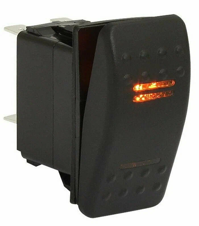 Клавишные выключатели в брызгозащитном исполнении (IP56). Снабжены оранжевыми светодиодными индикаторами, вызывающими минимальное утомление глаз в ночное время (2 светодиодных индикатора - подсветка и индикация включенного состояния). Представлены в трех вариантах исполнения (двухпозиционные, двухпозиционные с возвратной пружиной, трехпозиционные). Модели с возвратной пружиной рекомендуется использовать для подключения оборудования, работающего кратковременно (к примеру, сигнальные горны, сирены) или оборудования, работа которого должна быть возможна только под постоянным контролем оператора (к примеру, якорные лебедки). Произведены по специальному заказу компании «Мореман».