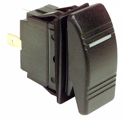трехпозиционный выключатель с шестью контактами и возвратной пружиной (клавиша не фиксируется во включенном состоянии), двойные светодиоды отсутствуют,