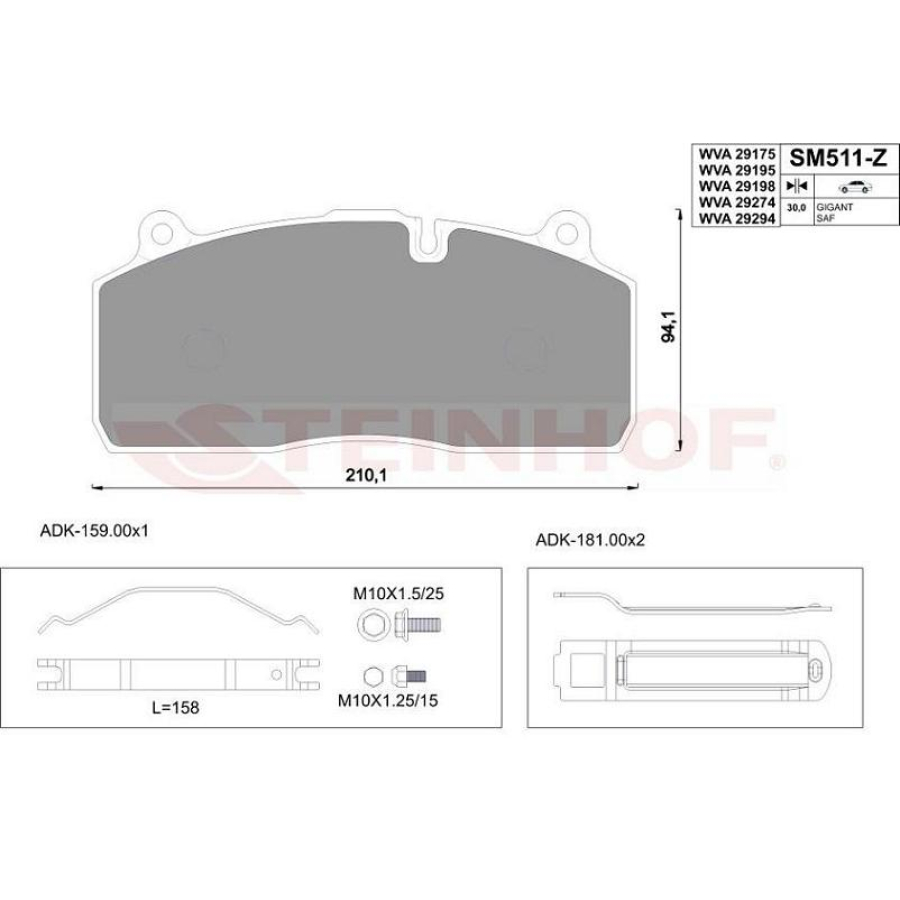 Колодки тормозные дисковые 4 шт. с уст. комплектом 210,1х94,1х30 WVA 29175/29195/29198/29274/29294 Zaciski Haldex DB22L/LT, Gigant 93200, SAF 305 700 9600, SMB 790-22040, 9291072