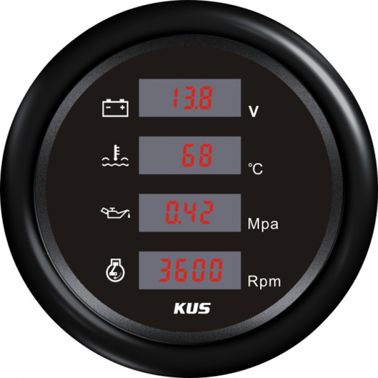 Многофункциональный прибор оснащен вольтметром, указателем температуры воды, указателем давления масла и тахометром.