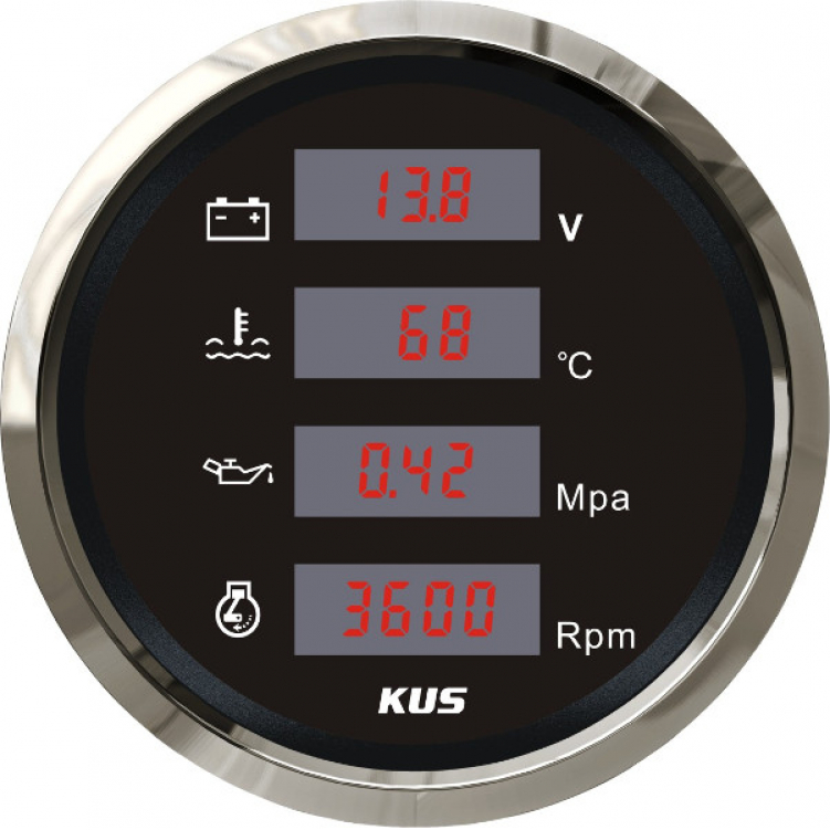 Многофункциональный прибор оснащен вольтметром, указателем температуры воды, указателем давления масла и тахометром.