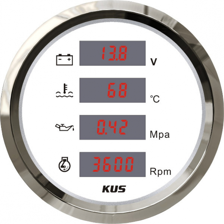 Многофункциональный прибор оснащен вольтметром, указателем температуры воды, указателем давления масла и тахометром.