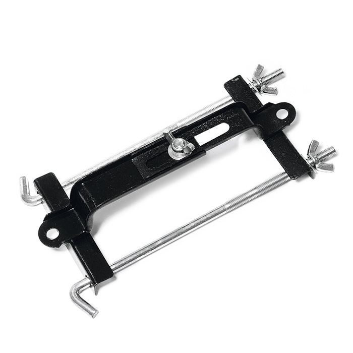 Две шпильки с резьбой длиной 230 мм обеспечивают надежное крепление аккумулятора к креплению. Барашки под резьбу М8 позволяют быстро и удобно зафиксировать аккумулятор на месте. Каркас изготовлен из прочной стали и покрыт черной краской для защиты от коррозии. Шпильки изготовлены из оцинкованной стали, что также обеспечивает их долговечность и устойчивость к коррозии.