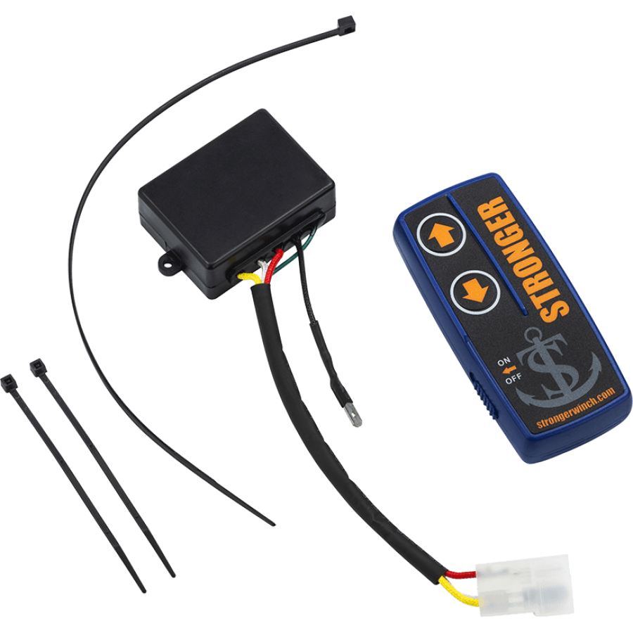 Радио модуль подключается непосредственно к штатному разъему якорной лебедки, а сам блок крепится в любом удобном месте на катере закрытом от атмосферных осадков. Пульт управления имеет кассету для крепления на приборную панель катера. Радиус действия до 50 метров.