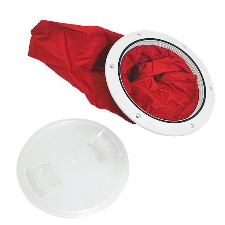 Лючок технологический пластиковый снабжен резиновым уплотнителем, прозрачной крышкой, красным нейлоновым мешком.