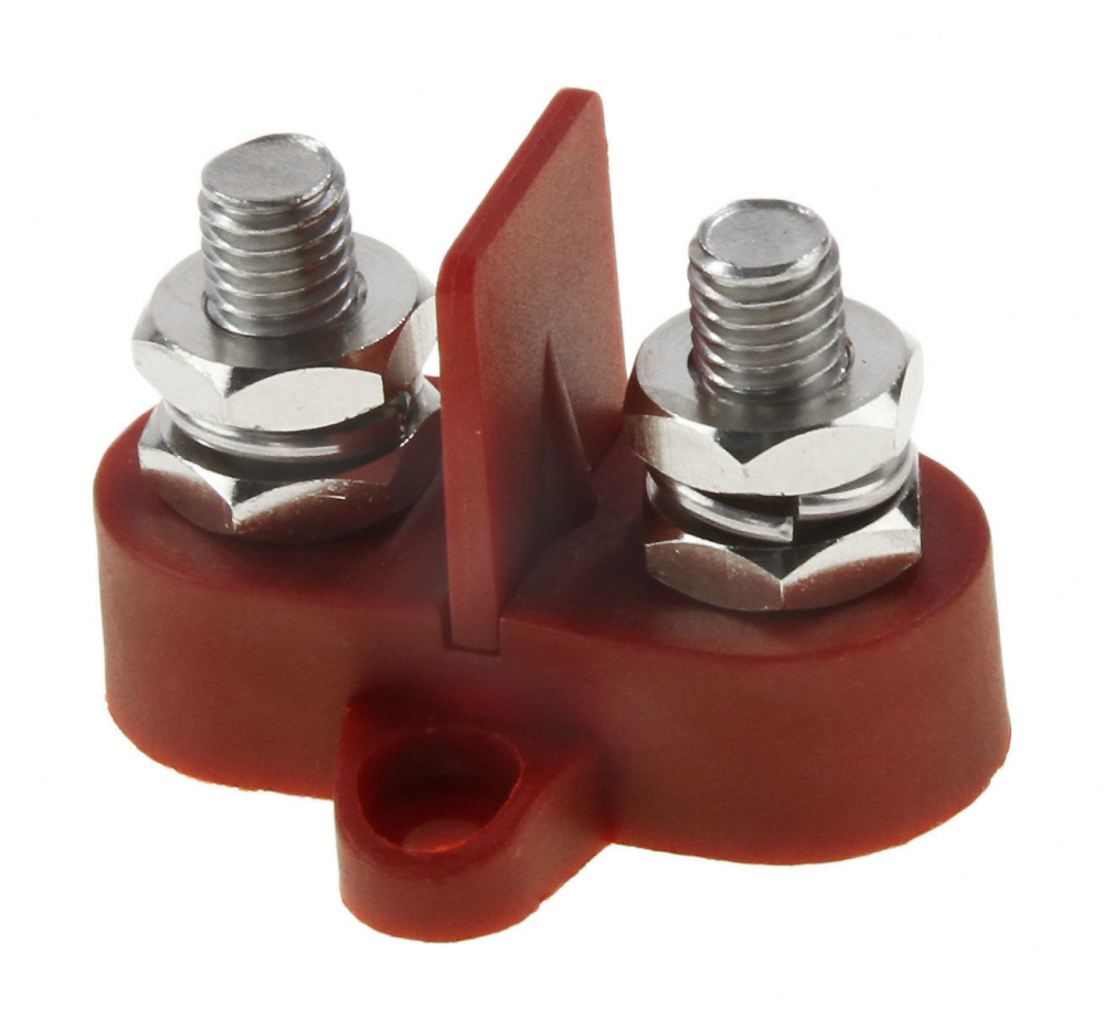 Клемма плюсовая двойная с резьбовым зажимом и перегородкой. Основание клеммы изготовлено из армированного нейлона, контактная группа из никелированной латуни.