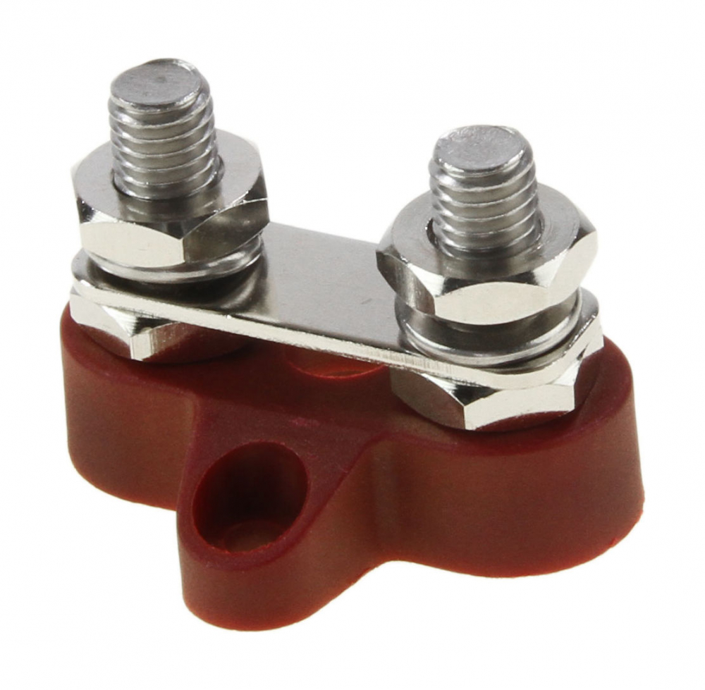 Клемма плюсовая двойная с резьбовым зажимом и перемычкой. Основание клеммы изготовлено из армированного нейлона, контактная группа из никелированной латуни.