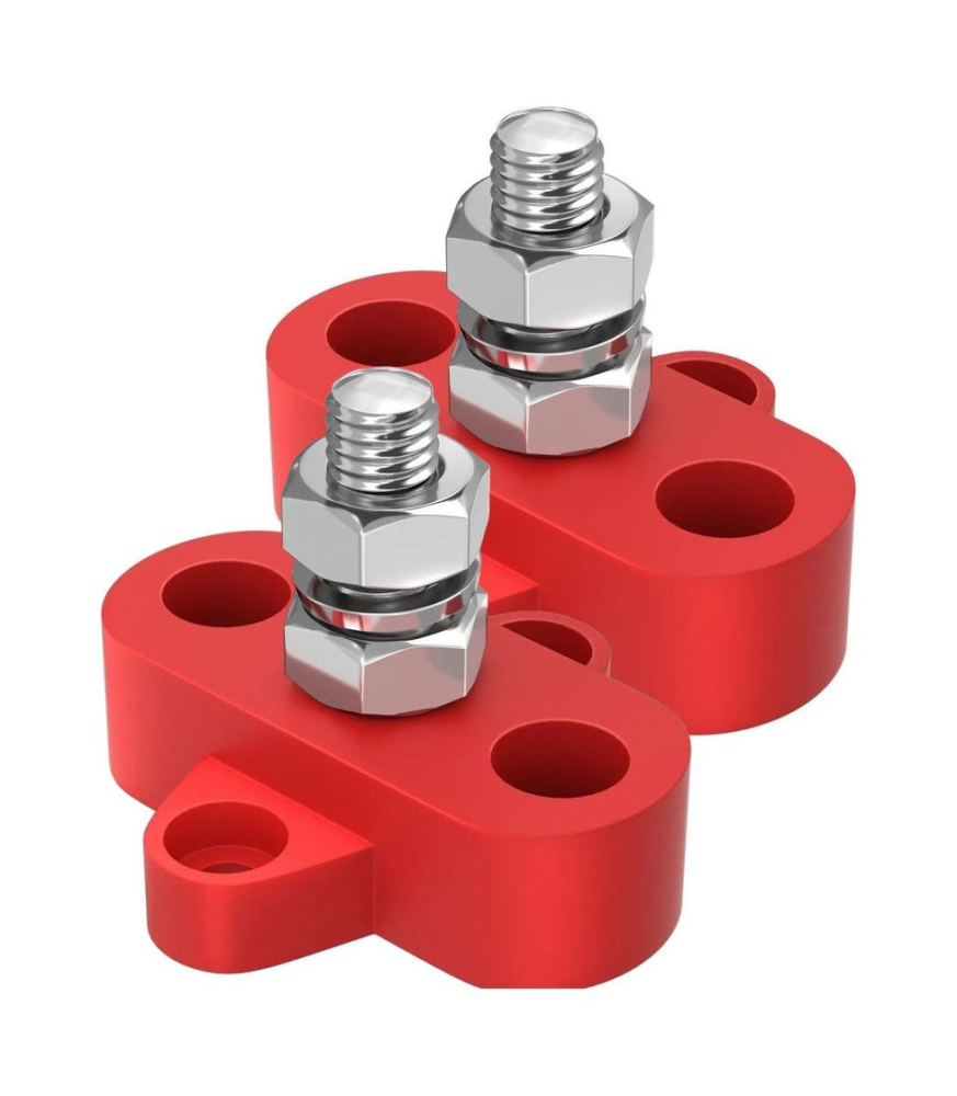 Две клемы красного цвета с резьбой М10