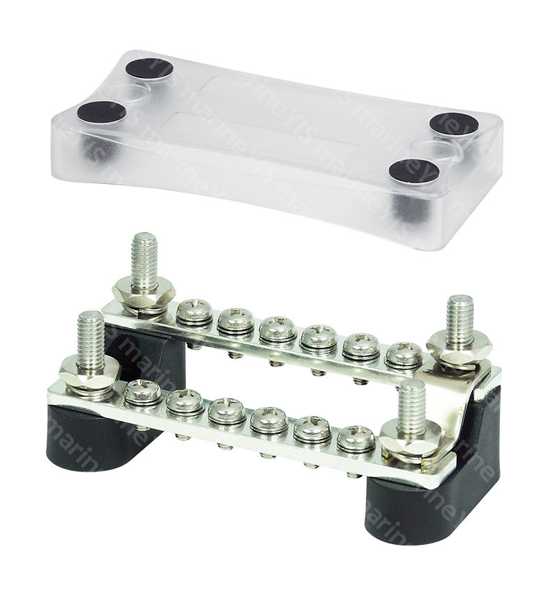 Двухступенчатая двойная шина с разной высотой обеспечивает более гибкую разводку, доступна с 12 контактами. Дополнительная прозрачная изолированная крышка с углублением для этикеток. Шина из луженой меди. Шпильки и винты из нержавеющей стали обеспечивают отличную антикоррозионную способность.