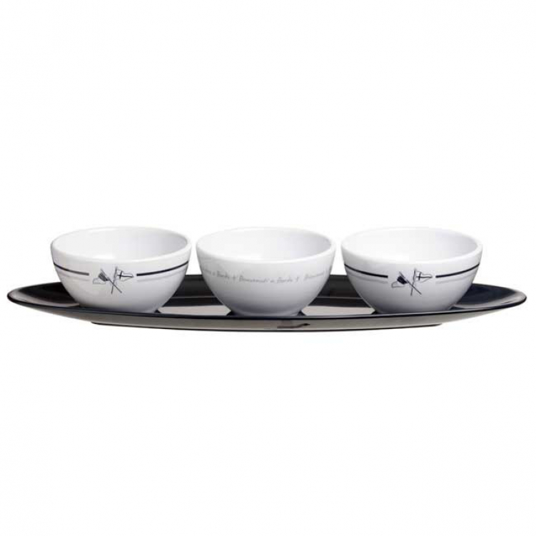 Поднос и три миски из меламина — стойкого к ударам и царапинам керамоподобного пластика. 4 предмета в наборе. Цена за набор.