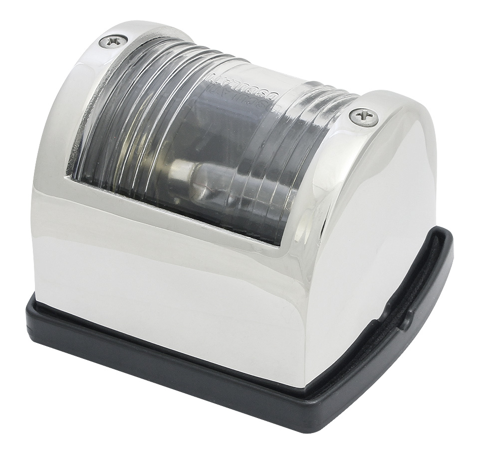 Белый навигационный огонь, устанавливаемый в кормовой части судна (на задней стенке каюты, на леере или флагштоке). Обеспечивает освещение сектора с углом в основании 135 градусов. Линза Френеля способствует распределению светового потока в горизонтальной плоскости, что увеличивает дальность видимости огня при неизменной мощности лампы. Рекомендуется для судов длиной до 12 м.