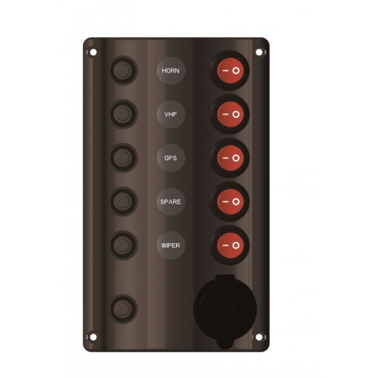 Панель бортового питания 5 переключателей, разъем прикуривателя, индикация, автоматы.