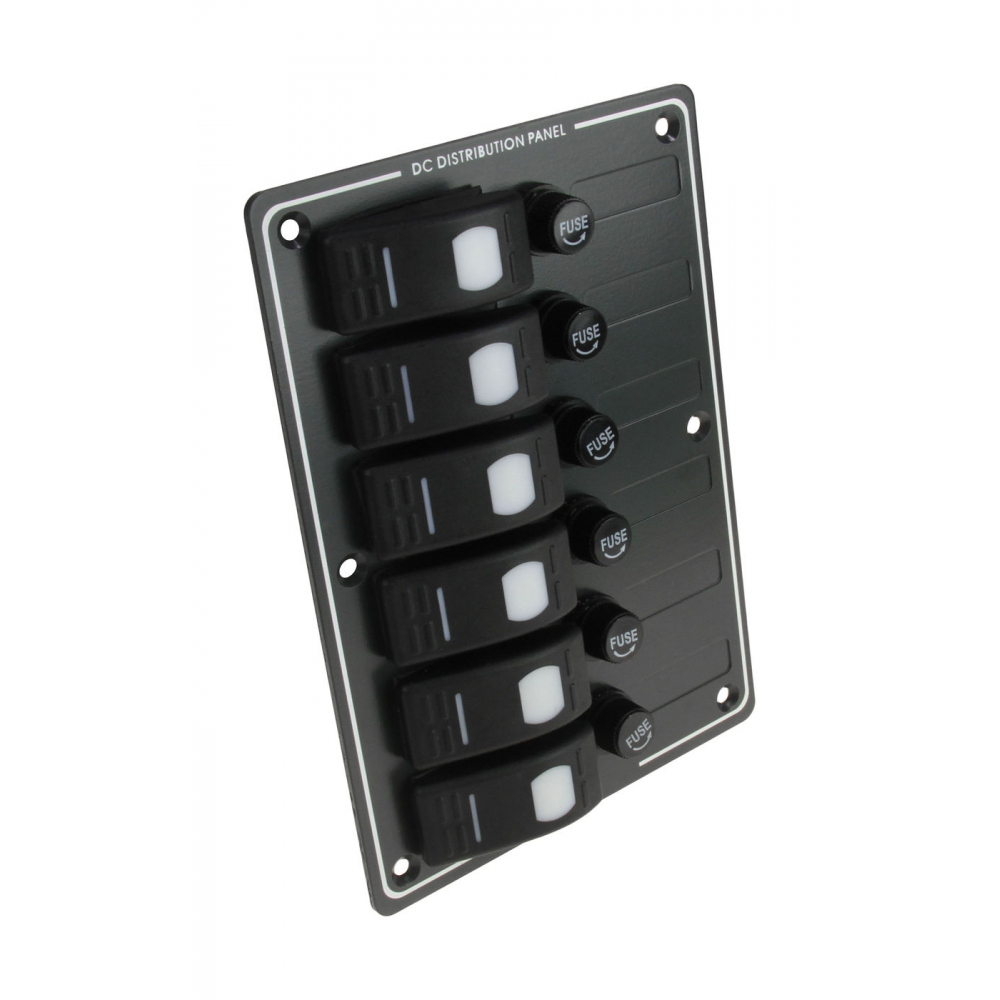 Панель управления бортовым питанием с клавишными переключателями и плавкими предохранителями. Вертикального расположения.