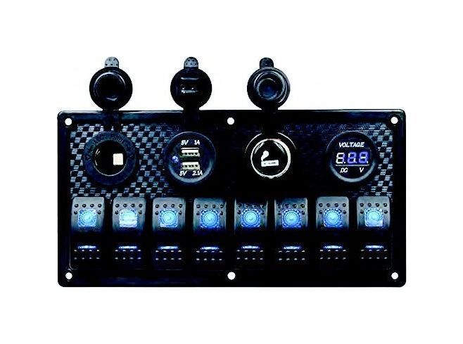 Панель бортового питания 8 переключателей, USB зарядка, розетка, вольтметр, прикуриватель.