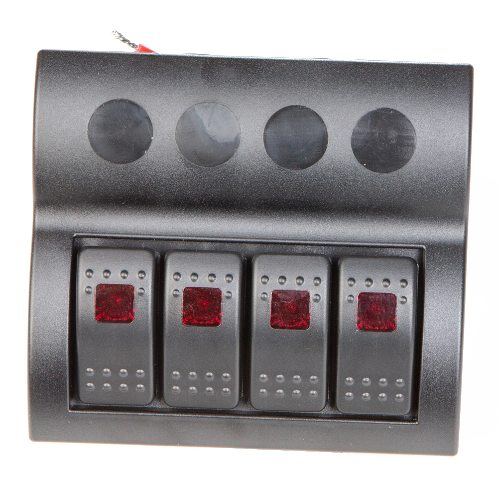 Панель управления бортовым питанием с клавишными переключателями. Панель оснащена автоматическими предохранителями. Переключатели имеют световую индикацию работы выбранного режима. Примечание: ON - фиксируемое положение "включён" (ON) - не фиксируемое положение "включён" OFF - "выключен" Комплектация: Панель на 4-ре клавишных выключателя. Комплект наклеек для различных потребителей. Крепежные шурупы.