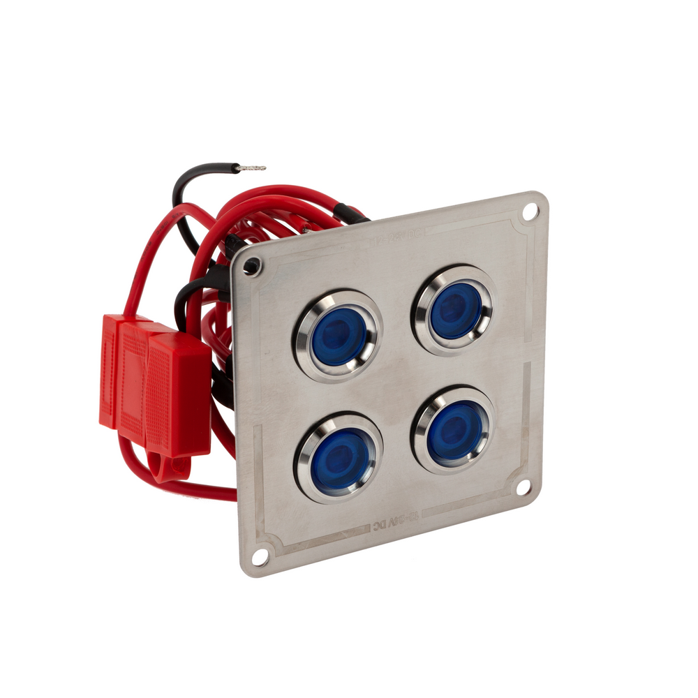 Панель бортового питания позволяет подключать электроприборы к бортовой электросети лодки и обеспечивать надежное и безопасное питание во время плавания. Используется для зарядки аккумуляторов и подключения дополнительных устройств, таких как насосы и обогреватели. Выполнена из нержавеющей стали S.S304. С 4 синими светодиодными влагозащищёнными переключателями. Панель размером 80х80 мм.