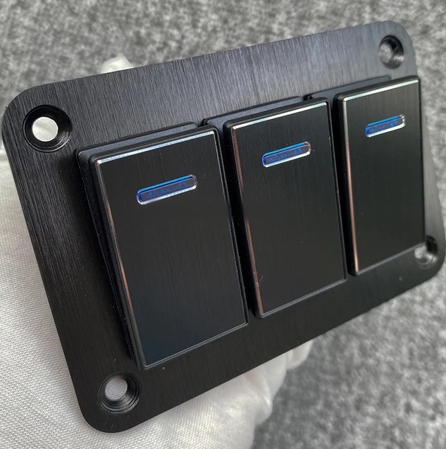 Панель 3-х групповых переключателей может применяться к рабочему напряжению 12 В постоянного тока или 24 В постоянного тока, размер алюминиевой панели: 101x68 мм, размер выреза: 77x45 мм, подходит для различных автомобилей.