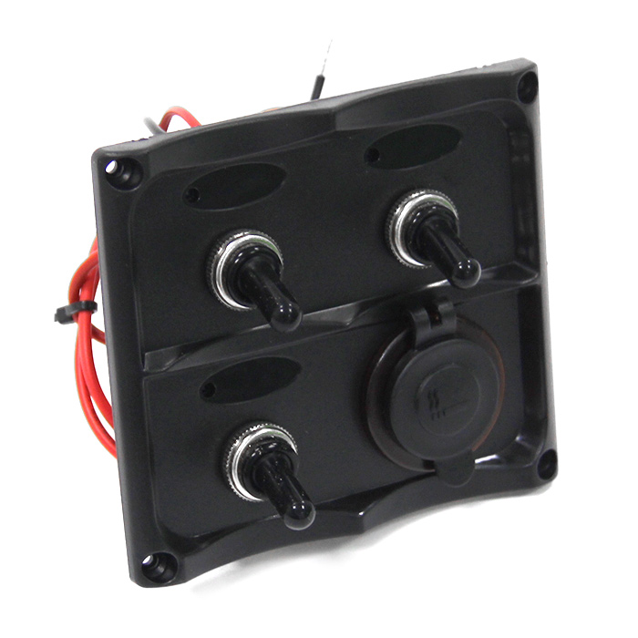 Панель переключателей 3шт с гнездом прикуривателя NEKEKE с подсветкой для катеров, яхт и моторных лодок. Панель оснащена тремя клавишами для удобного управления различными функциями судна.