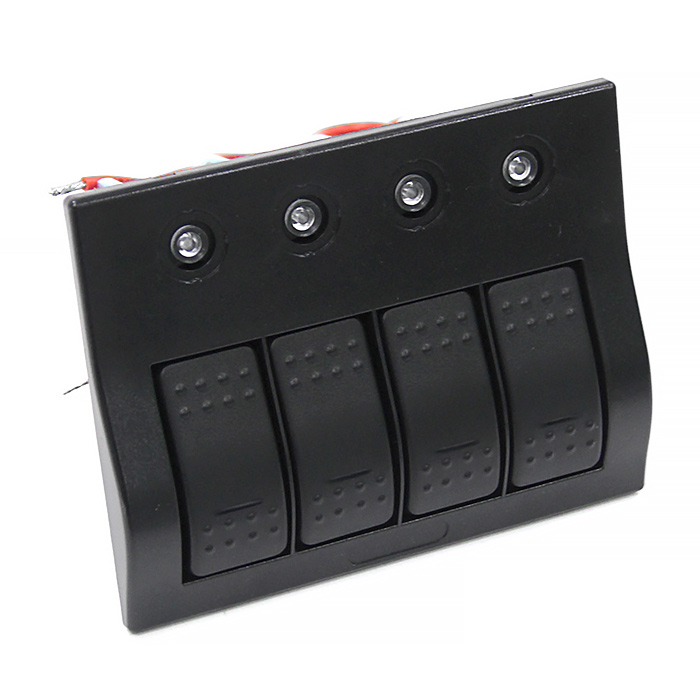Панель переключателей 4шт с автоматическими выключателями NEKEKE для катеров, яхт и моторных лодок. Панель оснащена четырьмя клавишами для удобного управления различными функциями судна.