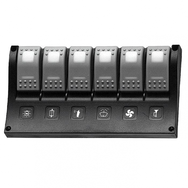 Оснащена 6 переключателями со светодиодными индикаторами включения.