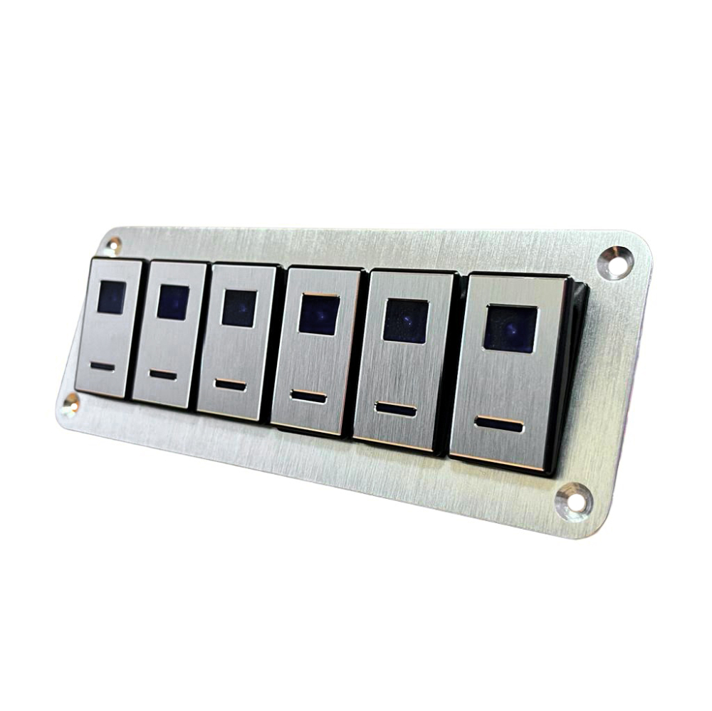 Панель алюминиевая с 6 клавишными выключателями в катер или лодку.