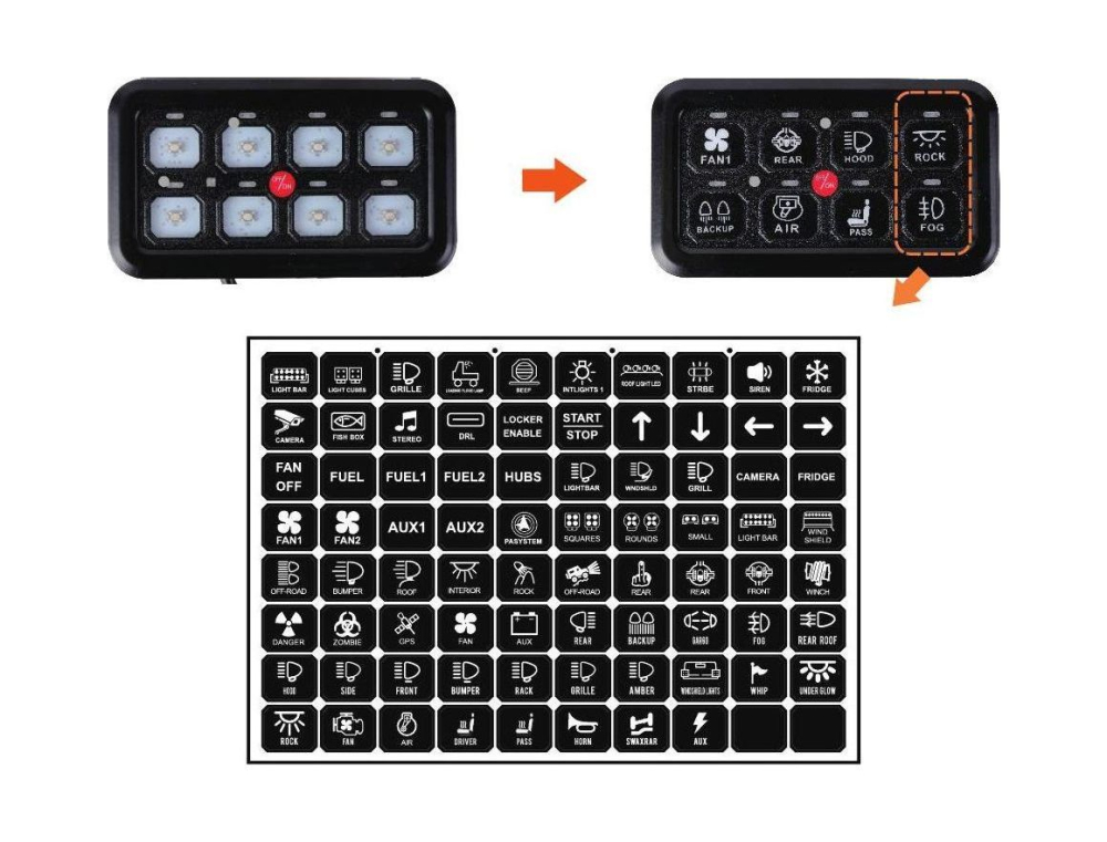 Панель управления (2 ряда, 8 кнопок, RGB), Marine Rocket.