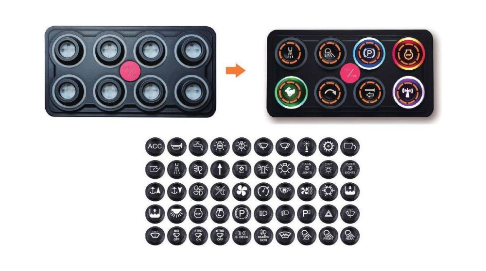 Панель управления (2 ряда, 8 кнопок, силикон, RGB), Marine Rocket.