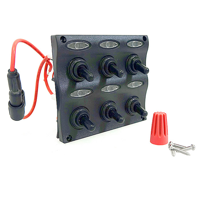Оснащена шестью переключателями (стандарт водозащищенности IP56), с двумя предохранителями 15 и 20А.