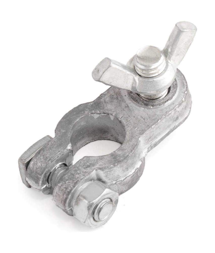 Клемма аккумуляторная для стандартных конусов, крепление гайкой-барашком под петлю, свинец.