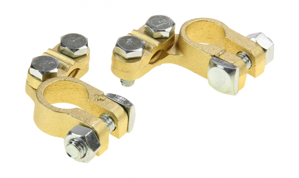 Комплект аккумуляторных клемм с винтовыми зажимами.