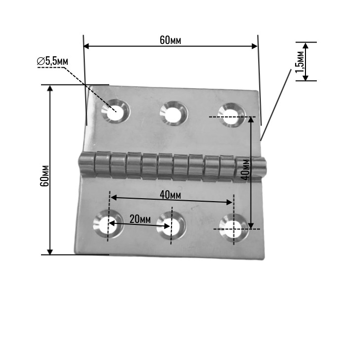 Прочная квадратная петля неразъемного типа предназначена для монтажа крышек рундуков, шкафов и другой мебели. Изготовлена из нержавеющей стали, что гарантирует устойчивость к коррозии и долговечность. Петля имеет шесть крепежных отверстий, обеспечивающих надежную фиксацию.
