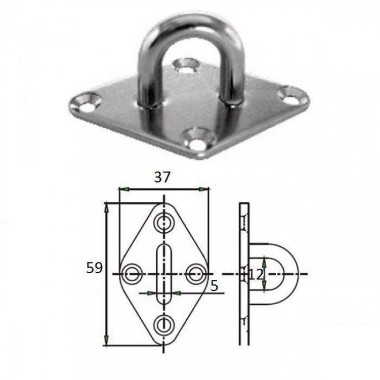 Планка ромб с проушиной, используется для проводки лопарей талрепа, для обтягивания стоячего такелажа или крепления иных конструкций в судостроение.