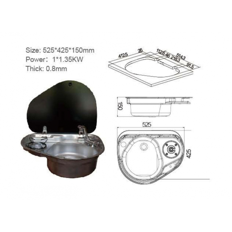 Плита выполнена из нержавеющей стали и снабжена практичной безопасной крышкой из стекла. Когда мойка и конфорка не используются, откидную крышку можно опустить. Таким образом, в ограниченном пространстве камбуза на катере или яхте либо в автодоме, жилом прицепе можно обеспечить дополнительную рабочую поверхность.