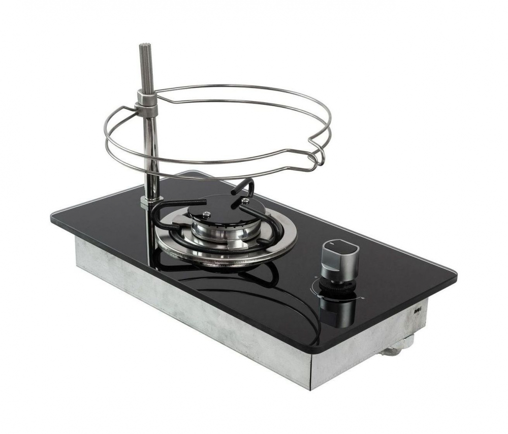 Компактная варочная газовая панель с одной горелкой. Стальной корпус, стильная поверхность из закалённого чёрного стекла — отличный выбор для размещения в ограниченных пространствах камбузного блока на борту судна или в кемпере (доме на колёсах).