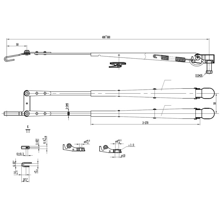 Поводок стеклоочистителя пантографный W.E 400-500мм, посадка на вал M8-10 (тип-H)