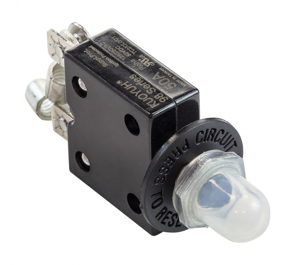 Автоматический предохранитель с защитным силиконовым колпачком. Обеспечивает защиту цепи при токе до 50 А.