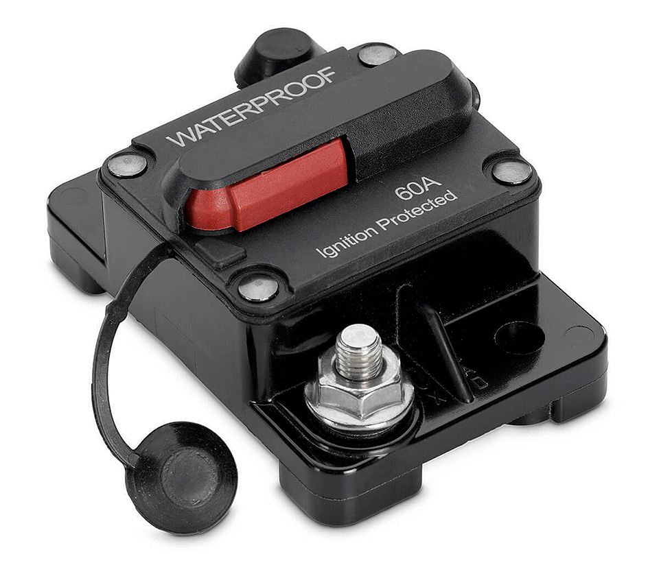 Автоматические предохранители во влагозащищенном исполнении. После срабатывания приводятся в рабочее положение путем нажатия на кнопку. Могут использоваться для принудительного обесточивания сети вручную. Не рекомендованы для использования с нагрузкой, имеющей большой пусковой ток (например, с якорными лебедками).