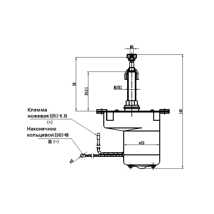 Электропривод стеклоочистителя W.E, длина резьбы 34 мм, посадка М5, 90°, 12В