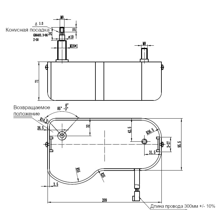 Посадка поводка: конусная с затяжкой гайкой M8.