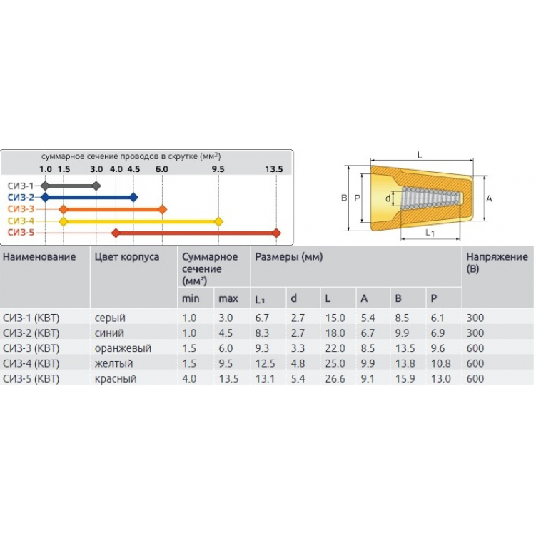 • пружина конической формы обеспечивает надежный захват и удержание скрутки проводов на протяжении всего срока эксплуатации